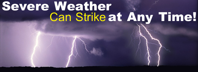 Do you know what to do in the event of severe weather? Families, schools, and businesses should have an emergency plan in case of threatening weather. This includes knowing where to go for shelter, what to do if severe weather strikes, have a NOAA Weather Radio to monitor conditions, and put together a Disaster Supplies Kit that contains a flashlight with fresh batteries, bottled water, a first aid kit, and blankets. Remember your safety depends upon knowing what to do should a severe storm strike. For more safety information, contact your county emergency management director.